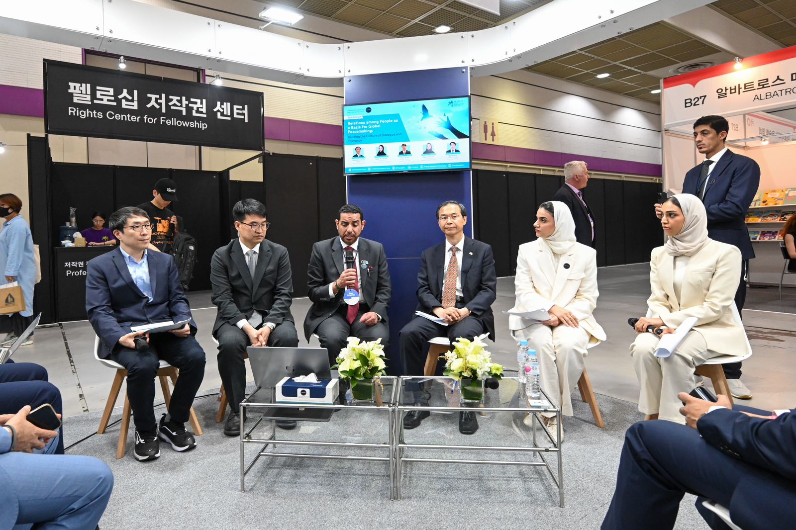 وأوضح في الندوة التي حضرها عبدالله سيف النعيمي سفير دولة الإمارات في كوريا، ومحمد جلال الريسي مدير عام وكالة أنباء الإمارات، وجمع مميز من الإعلاميين والكتاب والجمهور الكوري من رواد المعرض، أن الندوة تستهدف تأكيد أهمية تعزيز علاقات الشعوب، بوصفها الأساس لصناعة السلام العالمي من خلال العمل المشترك على بناء ثقافة الحوار والتسامح عالميّاً.