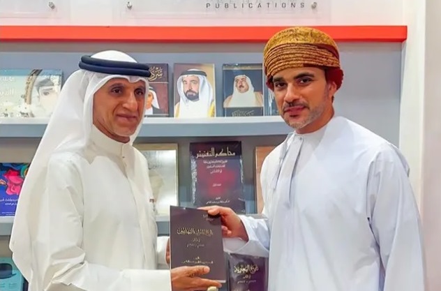 وزار جناح الهيئة السفير العماني في السعودية، فيصل بن تركي آل سعيد، حيث أهداه فاضل حسين بوصيم، مدير مكتب هيئة الشارقة للكتاب في المنطقة الشرقية، نسخة من كتاب “تاريخ المُلوكِ النَّبهانيين في عُمان “، لصاحب السمو الشيخ الدكتور سلطان بن محمد القاسمي، عضو المجلس الأعلى حاكم الشارقة.